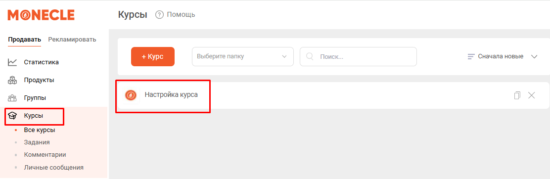 Выберите и откройте нужный вам курс в общем списке Курсов: